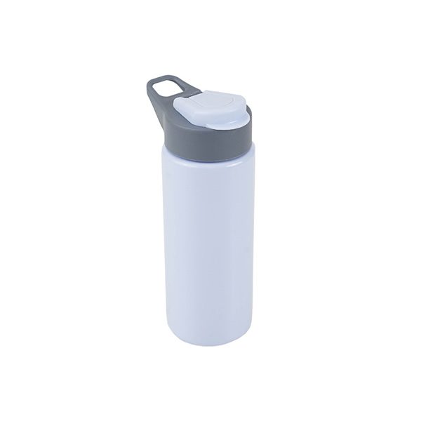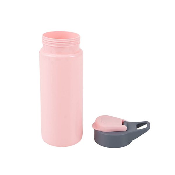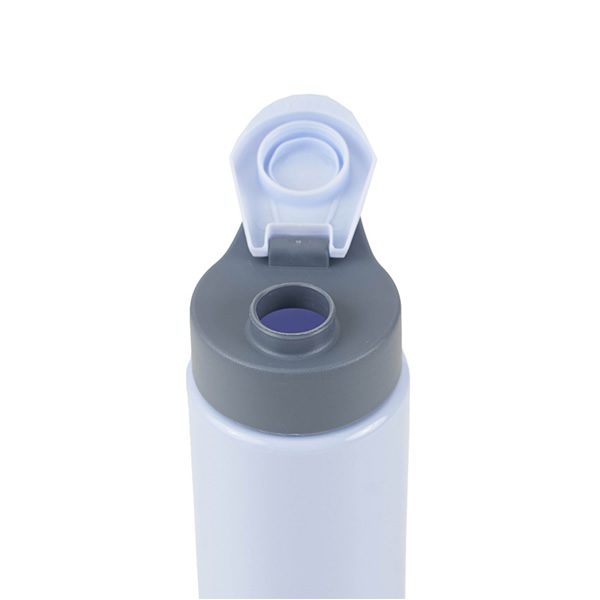 Botella reutilizable de PET con tapa de Polipropileno, cuenta con un agarre en la tapa para su transporte.