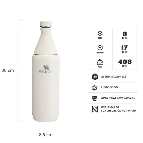 Ya sea como tu compañera en la playa, en un vuelo o en tu rutina diaria, la botella Stanley All Day Slim hace que mantenerte hidratado sea más simple y práctico.