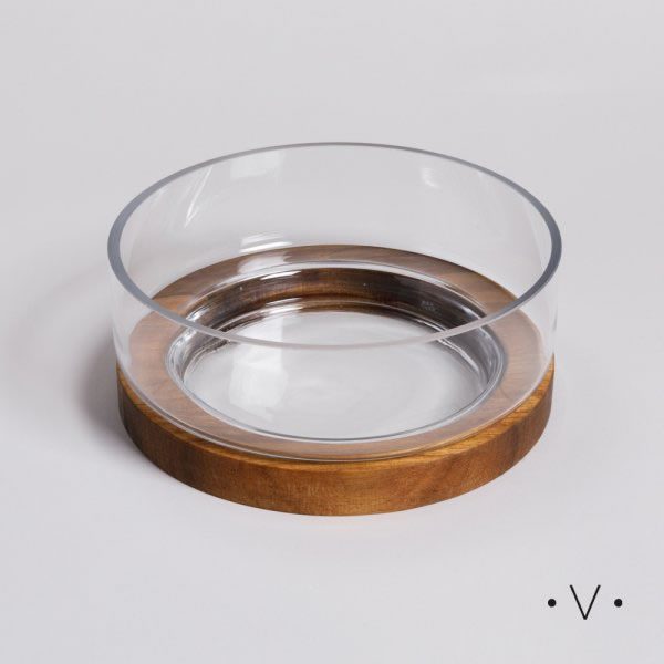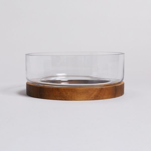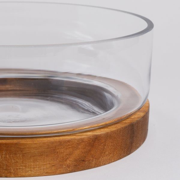 Bowl de Vidrio con Base de Madera de Acacia 1,8 L – VASSA