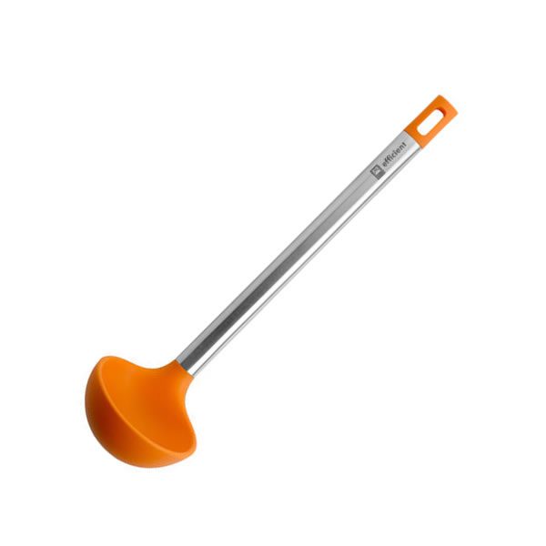 Cucharón de la colección Efficient ideal para usar en todo tipo de ollas, cacerolas o sartenes gracias a su fabricación en nylon y silicona de alta calidad que las protege y las mantienen sin marcarse