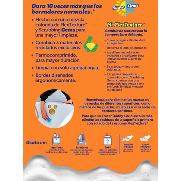 El Eraser Daddy combina la eficacia de los tradicionales borradores mágicos con la tecnología avanzada de limpieza de Scrub Daddy. A diferencia de los clásicos de melamina que se desintegran fácilmente, Eraser Daddy está reforzado con una capa de espuma Scrubbing para mayor durabilidad y potencia. Ideal para eliminar manchas difíciles en múltiples superficies sin esfuerzo.