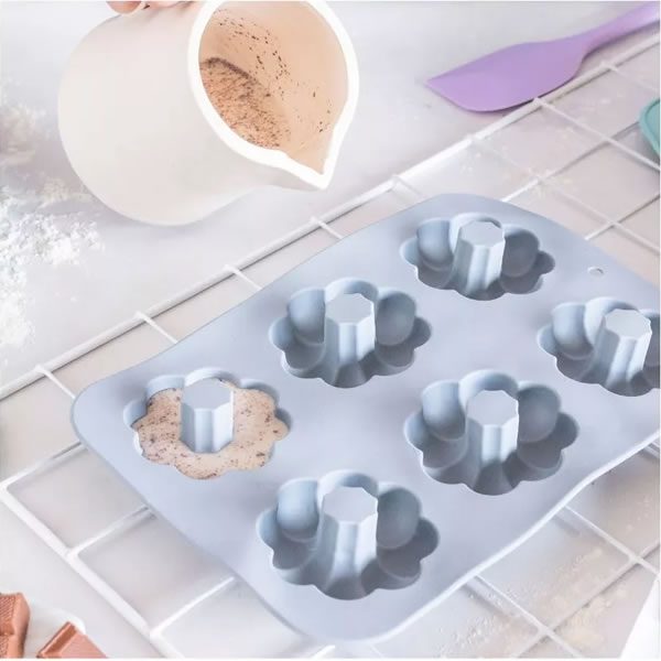 ¡Prepara deliciosos donuts forma de flor en casa con nuestro molde de silicona para 6 donas! Fabricado con silicona de calidad alimentaria, este molde es una excelente opción para hornear donuts de forma casera y saludable.