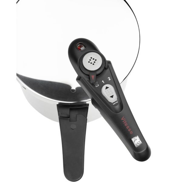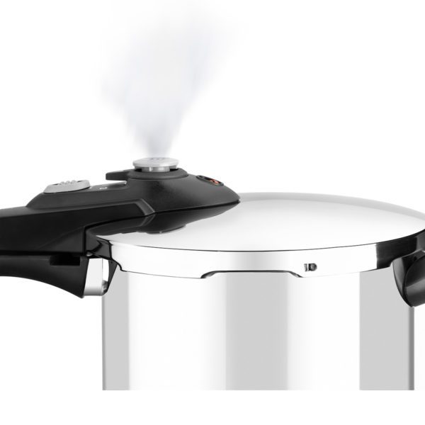 Dispone de dos programas de cocción, 3 sistemas de seguridad a presión y 1 sistema de bloqueo de apertura, cumpliendo con la normativa CE.