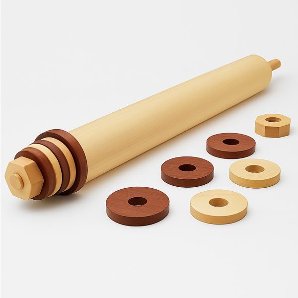 Palo de Amasar de Madera con Arandelas Niveladoras – 6 Grosores de Masa
