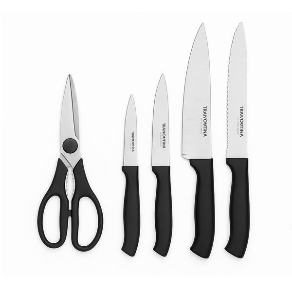La línea Plenus de Tramontina ofrece la combinación perfecta entre diseño moderno, practicidad y resistencia. Ideal para quienes buscan versatilidad, este juego de cuchillas está pensado para acompañar todas tus comidas: desde el desayuno hasta la cena, desde un asado con amigos hasta una tabla de quesos.