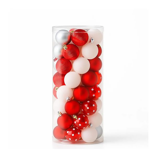 Set de Esferas Navideñas Tradicional – 50 Piezas – Rojas y Blancas