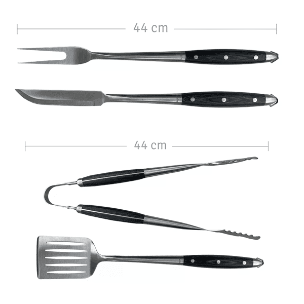 - Versatilidad: Un set completo con todas las herramientas esenciales para una parrillada perfecta.