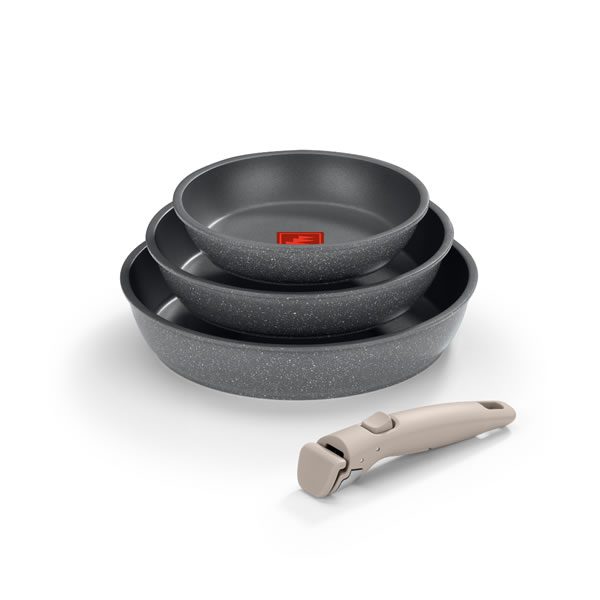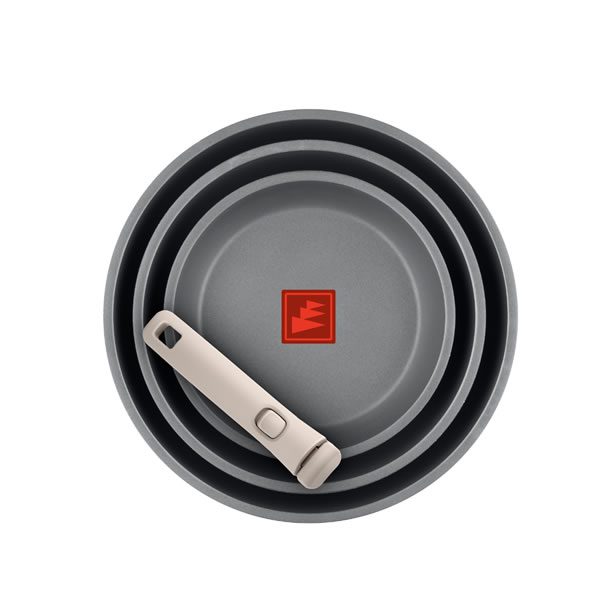 El set incluye tres sartenes de 18, 22 y 26 cm de diámetro.