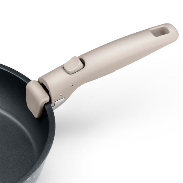 Mango desmontables One Click, que permite un agarre seguro y facilidad de almacenamiento.