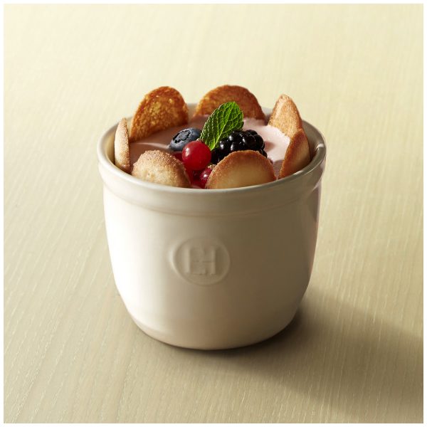 Ideal para muchos tipos de recetas para uno o dos, el molde Emile Henry es perfecto para huevos mimados, mini cobblers, pastel de pollo, gratinados individuales, soufflés pequeños, flan clásico y Pot de Crème. Los ingredientes se cocinan uniformemente, sin secarse, gracias a nuestra HR ceramic®. Nuestro esmalte altamente resistente protege su cazuela contra rasguños y astillas, y se puede poner en el lavavajillas sin perder su color. Todos los productos de Emile Henry se fabrican en Francia y ofrecen una garantía de diez años.