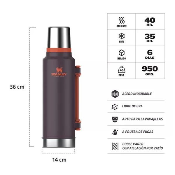 Termo Stanley Clásico 1.4L Asa Plegable Plum